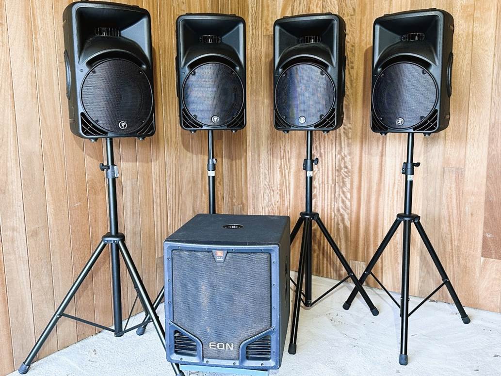 Mackie SRM 450 V3 (800W) + stands 4 stuks